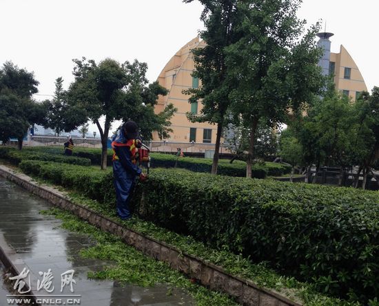 龙港网6月25日讯:随着雨季的到来,雨水在缓解旱情的同时也促进绿化植物旺盛生长,龙港外滩的杂草呈现疯长态势,给市容环境带来了影响,今天上午,记者路过外滩时看见不少环卫工人正对雨后滋生的杂草进行清除.现场,工人们利用割草机、锄头等工具对杂草进行铲除,确保不留死角,据环卫人员介绍,刚下过雨,土壤松软,很多平常拔不掉的杂草,现在不费力气就能连根拔起了。