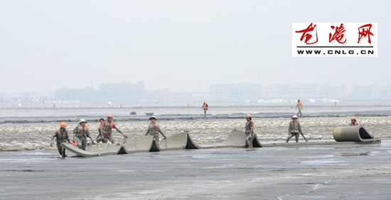 龙港网7月4日讯:连日来,龙港新城的江南海涂围垦区吹填及软基处理二期工地上近千名建设者们,在这片广袤的滩涂上拦海围垦、吹填成陆。