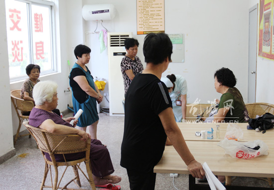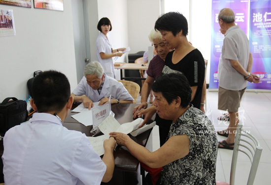 龙港网7月21日讯:今天上午,由苍南佑康和平医院牵头的“健康梦•家乡情——百名苍南籍省、市属医院专家大型义诊活动”走进湖前夕阳红老人中心,为社区老人开展义诊活动。