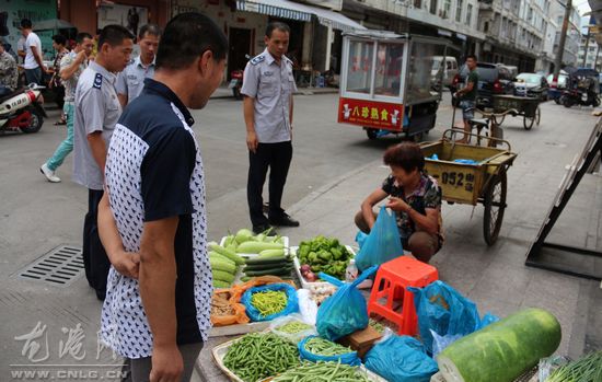 龙港网7月25日讯:为改善美化城市环境,为广大市民群众营造一个整洁靓丽的市容市貌,近日,龙港镇综合执法大队对新渡街马路菜市场进行了专项整治。