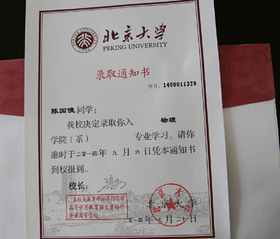 龙港网7月26日简讯:潜龙学校2011届毕业生陈国俊于近日被北京大学物理学院录取,7月25日下午,在其家长带领下,回母校潜龙学校与校长李甫栋等交流学习经验。据悉,陈国俊同学于2008年入读潜龙学校,在校成绩一直名列前茅,2011年考上杭州学军中学,在国家级物理竞赛中表现优异,现如愿入读北京大学物理学院。