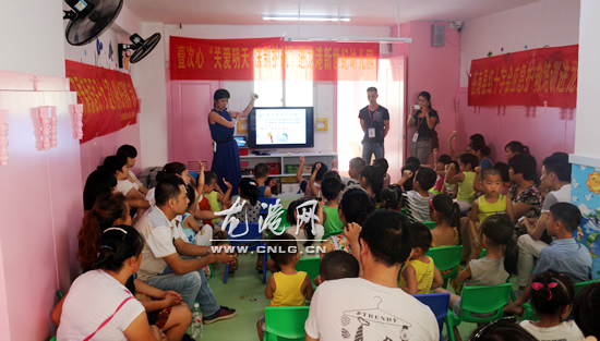 龙港网8月8日讯:昨天上午,龙港镇新世纪幼儿园里热闹非凡,小朋友们兴高采烈地高举双手大声回答老师的问题,随着老师的引导比划着手指,笑声和掌声不断……暑假过半,孩子们暑期安全问题依然不能放松。为了让孩子们安全、快乐地过好暑假,龙港镇新居民服务管理局携手苍南县红十字会、苍南县壹次心未成年人帮扶中心在龙港镇新世纪幼儿园开展了“关爱明天•法制护航”暨“爱心相伴快乐暑假”活动。