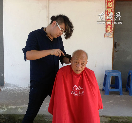 齐天乐食品有限公司总经理洪少红欣然加入了志愿者队伍,和志愿者一起挨家挨户给老爷爷送月饼,陪爷爷聊天,了解爷爷的生活、身体情况。看到爷爷们都保存着志愿者送的慰问品舍不得吃,志愿者们一再嘱咐老人要尽快食用,吃完了还会继续送过来。院子里头,鳌江尚豪美业的发型师们给老爷爷摆好了凳子,轮流给他们免费理发。