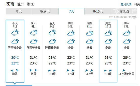 9月7日、8日两天,龙港将以阵雨转多云为主,气温均在22℃~31℃之间,当日下午或傍晚可能会出现小阵雨的天气。而随着阵雨结束后天气渐渐转好,呈现多云状态。届时,赏月会有凉爽秋风吹过,一轮明月或将在云中不断穿梭,上演“云追月”的美妙情景。喜欢赏月、爱好摄影的人可不要错过这一画面哦!