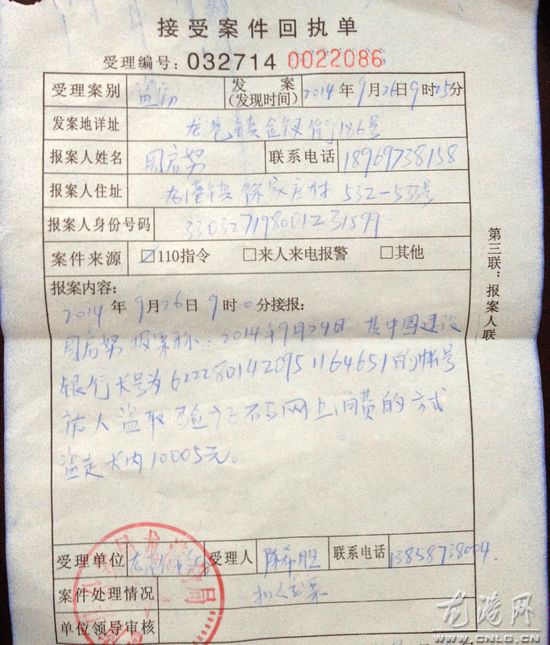 据了解,周先生平常习惯将钱存入银行卡办理网上消费,为了能及时知道帐户信息并办理了短信服务。不过在9月25日,他发现自己建行卡帐户信息有意外情况。随后,他立刻到开户行(西一街龙港大道口)的中国建设银行查询时发现,他的一万多元钱是通过快捷支付、财付通等方式分13次被他人消费,消费的具体时间为2014年9月24日下午16:38:06-21:13:37点,奇怪的是银行那边竟没发一个扣款信息到周先生绑定的手机号上,周先生一直想不通是什么途径泄漏了帐户信息导致卡里钱丢失。目前,他已向龙港警方报案公安己立案,并希望建设银行能够给出一个合理的说法。
