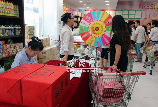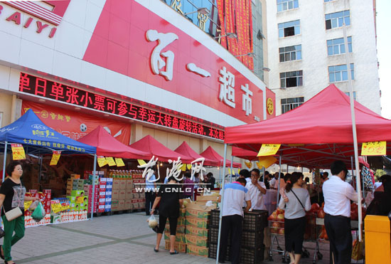 22周年庆,“百一”超市,开门送好礼。上午,记者来到“百一”龙华店,看到超市门口不仅排满了让价促销的各类商品,室内也站起来了长队,等待领取超市的赠送礼品。据悉,为庆祝超市22周年庆,“百一”超市还开展了购物抽大奖的活动,在活动期间,在指定活动门店购物满88元的顾客,凭当日单张购物小票可参与抽奖活动,将有机会获得iphone6、自行车等豪礼,时间为10月10日至10月23日。