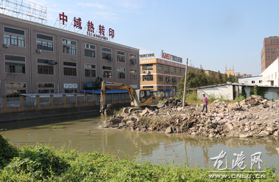 在10月9日水政中队日常巡查中发现龙港镇某工业园区前河道有人非法占用河道,即当场发放责令停止违法行为通知书兵并责令限期整改。龙港分局领带对于此案高度重视,对当事人进行了法律政策宣传并规劝其主动执行拆除违法建筑物,但该集团超过限期并未整改到位。为维护水法律法规的严肃性,水政大队、中队联合执法,在10月24日上午出动两台挖机对违章之处予以强制拆除,这一行动得到了周边村民的大力支持,无不拍手称快。