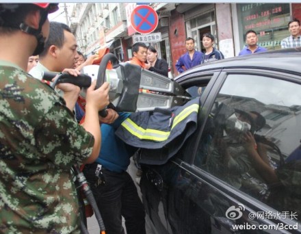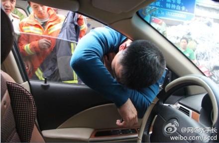 龙港网11月3日讯:(陈记)本网从新浪微博获悉,龙港一网友“网络水手长 ”称:11月2日下午14点53分,苍南龙港镇上厂街与龙翔路路口,有人脖子卡在小车窗户上。事后经过询问该中年男子把车停好后,发现东西落在车里,于是返回车里拿东西,为图方便并将身体伸进车窗,谁知车窗开关发生故障,于是造成此次杯具的发生。