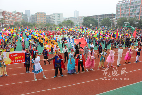 王子、公主、阿拉丁、睡美人,这些童话人物造型,齐刷刷地出现在了近日龙港第九小学的校园运动会开幕式上。表演者是该校6年(1)班的全班同学,一个个奇特、富有文化趣味的服饰创意,充分展示小学生的风采。