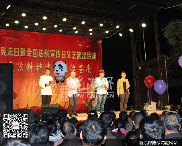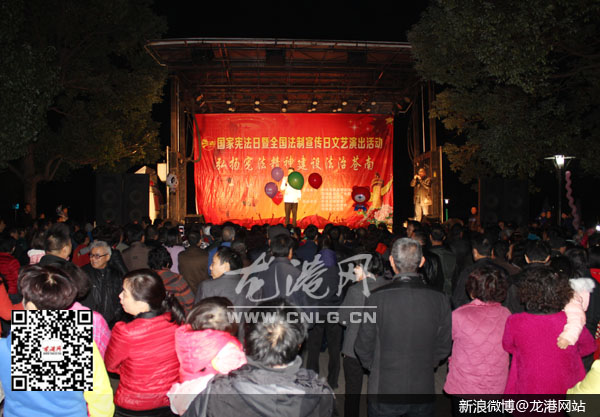 龙港网12月5日讯:昨晚,一场由县委法制办、县司法局联合主办的“法制宣传日”文艺演出活动走进龙港象湖公园,为当地群众营造出了浓厚的尊法、学法氛围。
