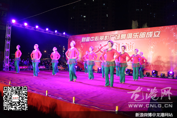 龙港网12月23日讯:昨天晚上,龙港镇财富中心丽影广场健身舞俱乐部在财富广场举行成立授牌仪式。现场进行了丰富多彩的文艺演出,吸引了广大市民的观看。
