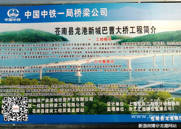 龙港网1月1日讯:日前,龙港新城舥艚大桥工程正式开工建设,预计于2017年4月完工并交付业主使用。