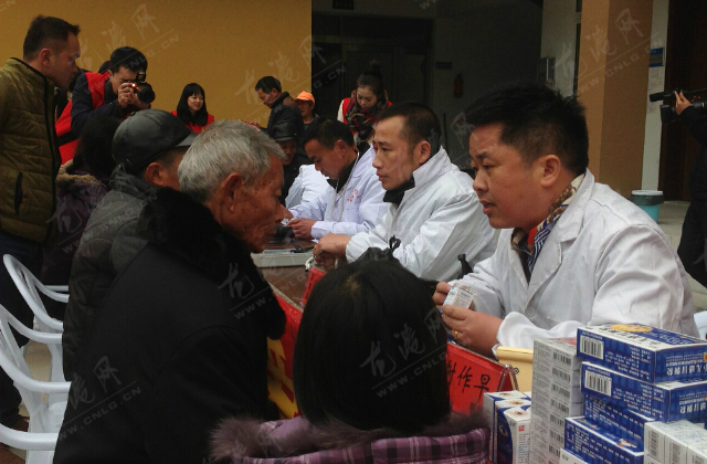 龙港网民监督团的医疗团队为村民进行义诊,并分发了免费的药品。医疗团队的医师们都尽量使用方言与村民沟通,大大拉近了与村民的距离。章道能先生也在现场为村民书写对联,为即将到来的春节增添了一丝喜气。