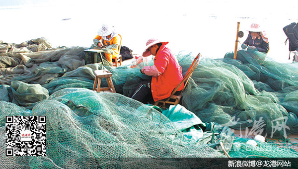 日前,随着出海渔船大量归港,作为后勤人员的渔民妇女们也开始忙碌了。她们在码头上飞梭走线修理渔网,为不久后渔船再次扬帆做准备。图为12日中墩码头热闹场面。(周元斌/摄)