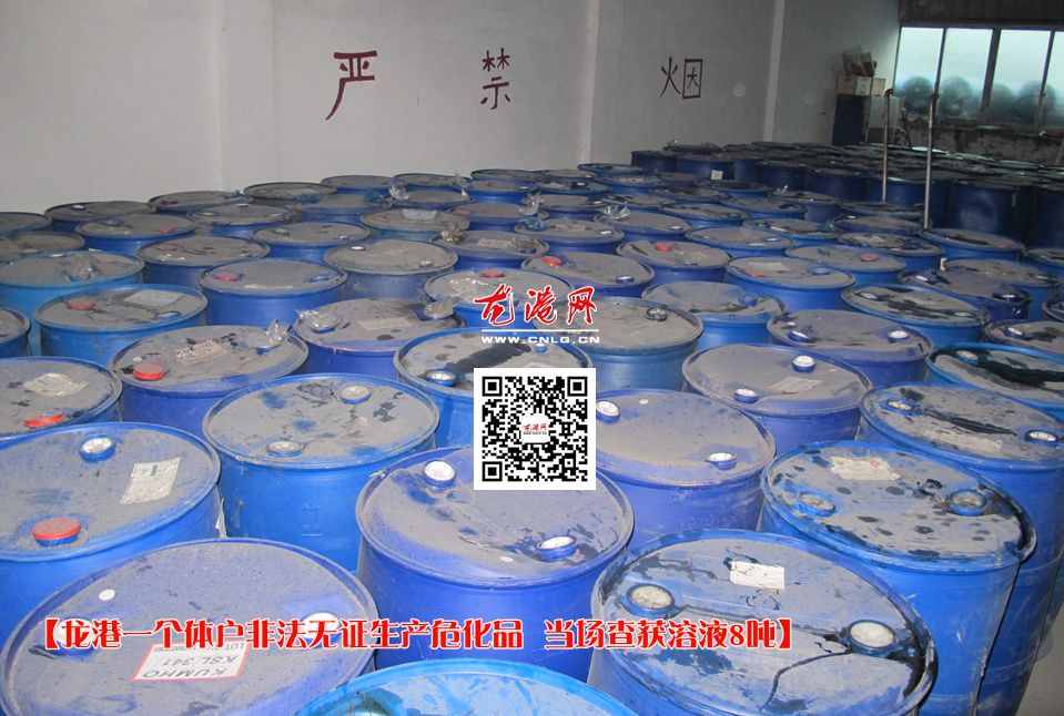 据安监执法人员称:龙港宏伟塑料制品厂于2014年6月27日在工商部门注册登记,经营范围是塑料制品加工,刚投入200万,购置生产危化品设备,从事溶剂制造销售。根据《安全生产许可证条例》、《危险化学品安全管理条例》之规定:企业应当依照本办法的规定取得危险化学品安全生产许可证。未取得安全生产许可证的企业,不得从事危险化学品的生产活动。该厂生产的甲基丙烯酸甲酯溶剂属于有毒物品的,除安全生产许可证外,还应当依法取得职业卫生安全许可证。从现场查看,该厂连安全评价报告、经营和储存场所消防安全验收都没有,属于典型的非法生产销售危化品企业。
