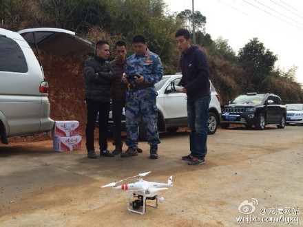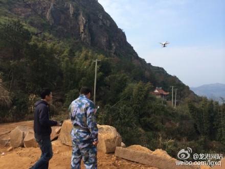 昨天下午3时,技侦人员绘制完现场地形图后,航空中队副中队长戴明明操控着“大疆精灵”航拍飞行器开始搜寻(如图)。该救援中心执行主任陈国栋介绍,罗垟山地形较为复杂,使用飞行器搜寻效果更佳。“飞行器配置视频监控,可将航拍图片发回中心,对救援起到帮助。”