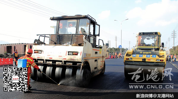 龙港网1月26日讯:1月24日,笔者在龙金大道金乡段看到,4辆大型工程车正在进行路面施工。据悉,近日龙金大道路面修建工程加班加点,加快推进速度,为尽量早日实现全面通车,方便群众出行提供保障。(周元斌/摄)