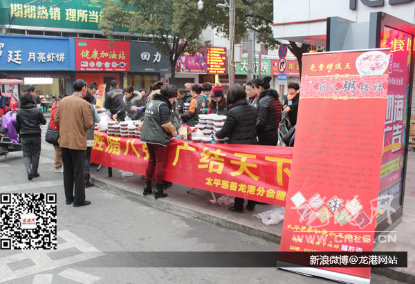 龙港网1月27日简讯:腊八是指每年农历的十二月(俗称腊月)的第八天,今天上午,太平洋总会龙港分会在龙港镇部分街道设点免费施粥,早上6点到9点,地点龙港镇:1.龙跃路工行前;2.龙湖路二高前;3.金河广场;4.巴曹典字路桥头(新兴西路);5.芦浦社区门口。