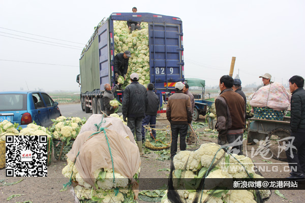 龙港网1月28日讯:元旦前后,收购价2.2元/斤的花菜让龙港白沙、海城菜农一尝丰收的喜悦。不过这段时间花菜每斤已滑落到6、7毛。价格涨幅像坐过山车,但菜农们反映还挺淡定,他们说,现在花菜大面积上市,卖到5、6毛/斤都还算正常。