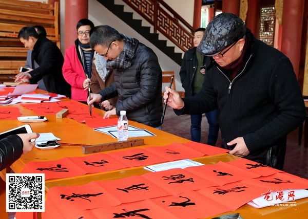 龙港网2月7日讯:书法家写的春联就是好啊!词好,字更好。今天,三味书坛20余名“书法家”来到龙港东排、西排文化礼堂一双排殿现场给我们写春联,是重视民生的一大体现哟。 当村民们本土得知书法家免费为村民写春联的消息后,心里暖洋洋的。三味书坛坛主、文楼画院院长徐诗容说:“为村民朋友写春联、送春联,把浓浓的羊年味儿和新春的祝福送到了村民的家门口。