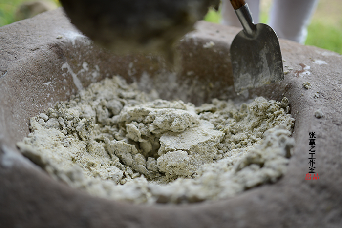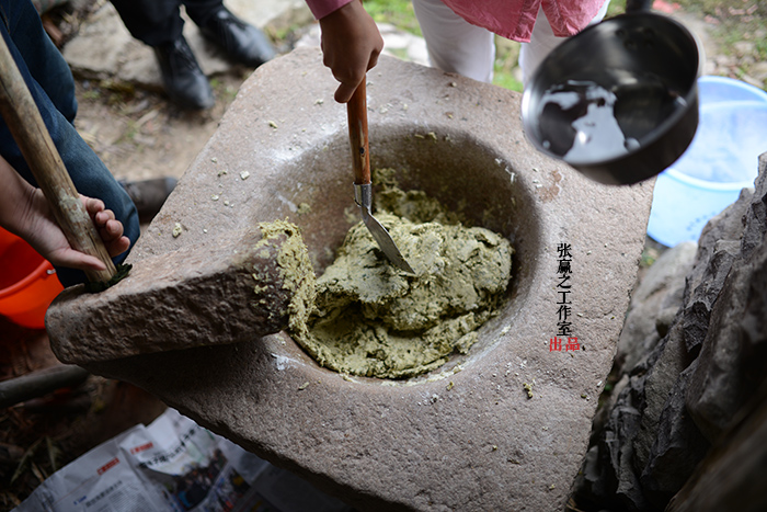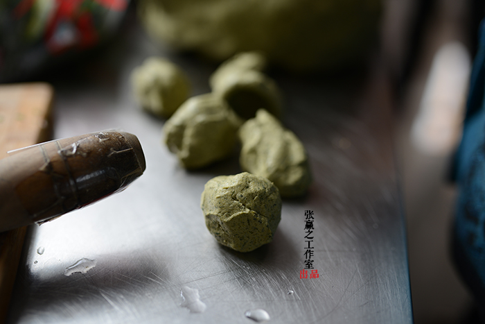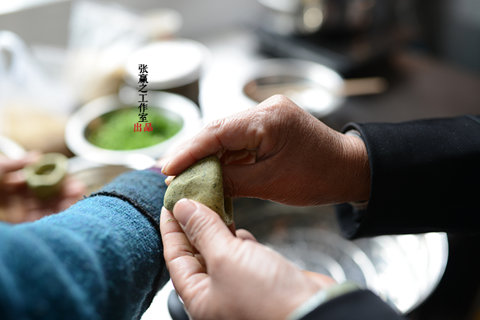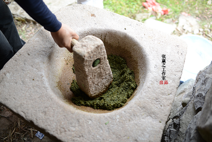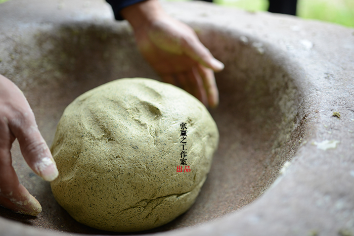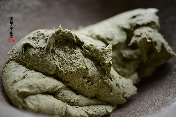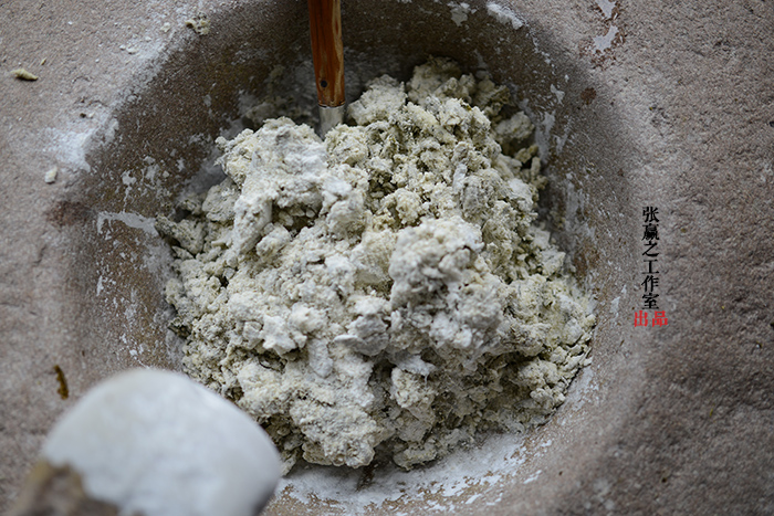 需得一直捣到棉菜完全融为一体,最后调节软硬干湿。