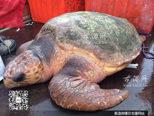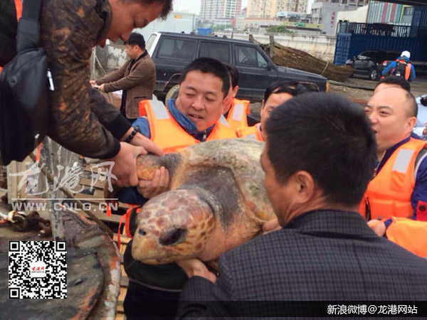 太平慈善功德会龙港分会常务副主席李信告诉本网编辑说,“昨天,一名义工在鳌江渔民那里发现了这只大海龟,他立即发动义工群一起筹集6千元善款买下这只大海龟,经仔细检查发现该海龟身上多处损伤,当场进行药物处理。