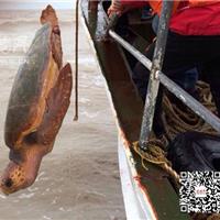 苍南县东海民防救援中心监事长潘志凯说,大海龟十分少见,以前看到过一只,而今天是他第二次“偶遇”大海龟。