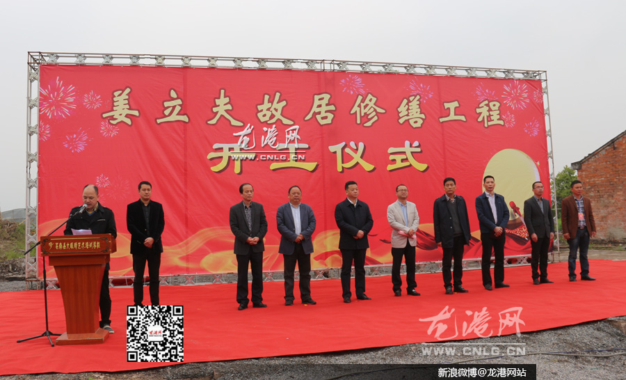 龙港网4月9号讯:今天上午,苍南县著名数学家姜立夫故居修缮工程开工仪式在故居前举行。开工仪式由龙港镇副镇长陈贤选主持,苍南县副县长林小同、县府办副主任叶俊青、龙港镇人大主席上官光强、县文广新局局长李晖华、副局长罗伟科等出席开工仪式,县文广新局、县博物馆、龙港镇文化中心、凤江社区、麟头村委会、工程设计单位等部门单位、姜氏宗亲及社会各界人士共同见证了这一历史时刻。