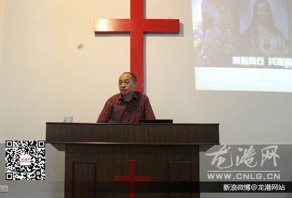 此次宣教活动邀请了苍南县“同心同行•共建和谐”宣讲团成员林维斌和陈忠巢两位老师到场授课。记者在宣教活动场所之一的龙港天恩堂内,看到讲师林维斌正在认真的授课。他以《宗教与社会主义相适应》 为主题,从中华民族的发展史、中共发展史和我国宗教的发展史入手,全面生动地阐述了马克思主义的宗教观,运用大量的史学、材料和案例,在充分阐明我国宗教信仰自由政策的同时,还倡导宗教界人士要爱国、爱教、爱人,要积极引导宗教界和广大信教群众同心同德,共建社会主义和谐社会,要与政府肝胆相照,为共同实现中国梦而努力。