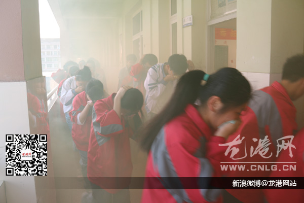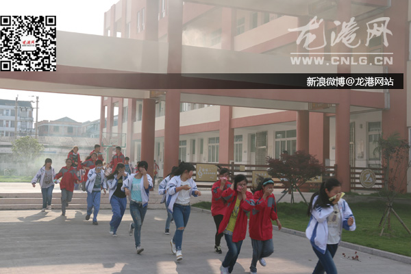 昨天下午16时,龙港七中校园各角落的烟雾弹被点燃,浓烟弥漫,紧接着防灾警报拉响,应急疏散演练正式开始。全校近300名师生学生听到警报后,抱头以低姿态迅速、有序地撤离教学楼,疏散到操场安全地带。在整个疏散过程中,每个班级都明确了疏散路线,疏散过程十分快速,不到两分钟,全校师生便到达安全地带。各班到达安全地带后,班干部迅速清点学生人数,确定人员脱险。