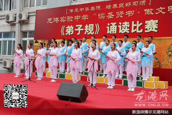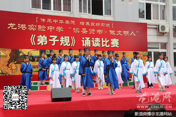 龙港网6月2日讯:为传承国学经典,发扬中华民族的优良传统,营造积极向上、文明和谐的文化环境。昨天下午,实验中学举办了“读圣贤书,做文明人——《弟子规》诵读比赛”, 初一段六个班级,一百多名学生参加了比赛。