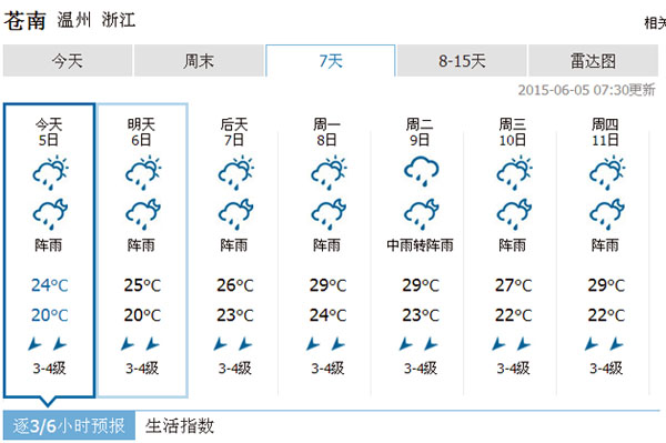 龙港网6月5日讯:2015年的高考如期将至。而随着高考的临近,考生和家长都很关心高考期间的天气形势,希望有良好的天气,能给考生考出好成绩带来帮助。随即,记者从温州气象局了解到,今年高考期间,龙港镇有阵雨来光顾,但温度也会相继升高,总体天气或将略显闷热。