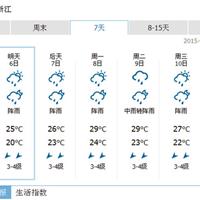 6月8日白天到夜间:阵雨,东北风3—4级,最高气温:29℃,最低气温:24℃。