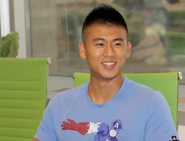 很多人听到张玉宁都会想到当年上海申花的“玉面杀手”,不过他们却是没有一点关系。若要硬凑上一点关系,那便是小玉宁看过大玉宁打比赛,“我小时候在上海踢球学习的时候,爸爸经常带我去看球,那时候我们都是蓝魔(上海申花球迷的称呼),看过他踢球”。当问到觉得自己和那个张玉宁有什么异同时,小玉宁表示:“感觉他踢得非常好,门前感觉也好,拿球特别冷静。跟他比,我可能更勤奋一些。”听到这里记者愣了一下,没想到他如此直接,或许是张玉宁也意识到自己说得有些不恰当,不好意思地笑了一下,“当然他已经达到很高的高度了,我还有很长的路要走”。