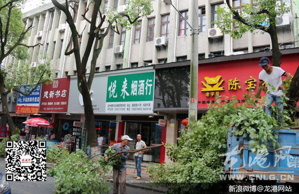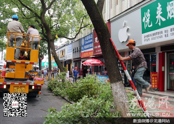龙港7月10日讯:随着“灿鸿”的日益逼近,龙港镇组织了相关工作人员对城内道路两侧的大树进行了应急修剪,以充分做好防范台风的准备,力求把灾害和影响减小到最低限度。