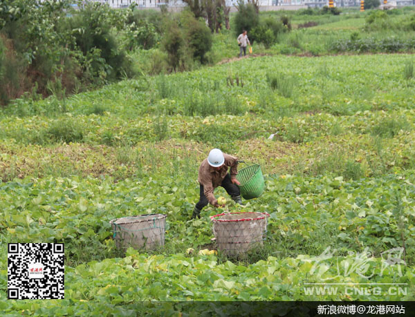 龙港网7月10日简讯:“灿鸿”来势正汹,直奔浙南而来。为防范台风带来的灾害,今天,龙港镇的农民们都在加紧抢收蔬菜、瓜果等农作物,希望在“灿鸿”来临之前,把农作物的损失降到最低限度。而就在今天上午,本网记者在时代大道附近看见,路上停着好几辆农用三轮车,不少农民仍然还在农田地上来回穿梭,与第九号台风“灿鸿”赛跑,加班加点的抢收农作物,促进农作物能够全数抢收进库,减少经济损失。