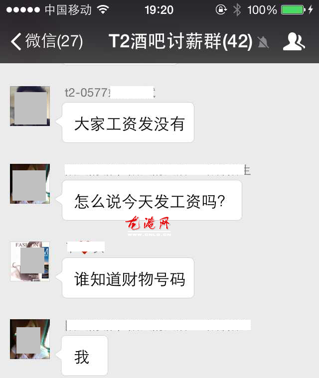 “子弹”还称:“为了维权,我们40余人还建立微信“T2酒吧讨薪群”大家一起讨论如何维权,尽早拿到工资。”