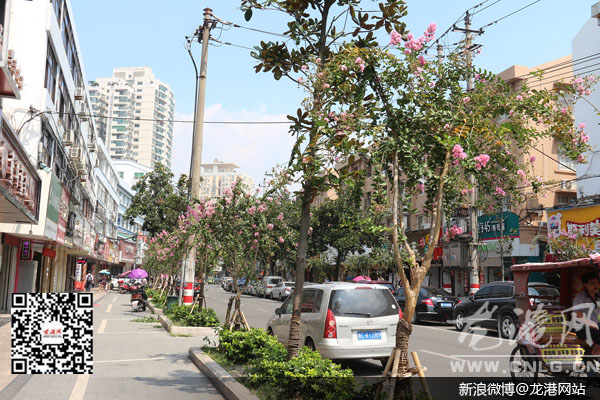 龙港网9月17日讯:每年八、九月份,正是紫薇竞相开放的时节。时下,在龙港龙跃路、文卫路等街头洋溢在一片花的海洋,树上的紫薇花开染粉了天空。