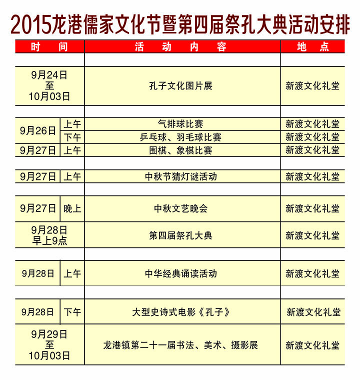 2015龙港儒家文化节暨第四届祭孔大典活动安排表