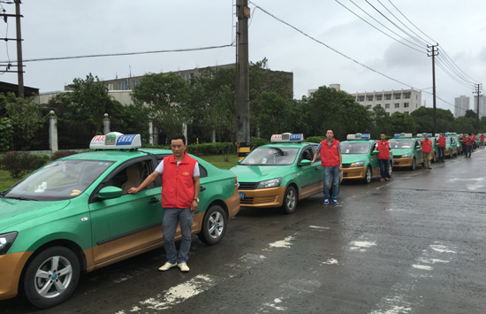 2015年9月28日,中秋刚过,今年第21号超强台风“杜鹃”挟风带雨,气势汹汹直向浙闽方向袭来。龙港镇的巴曹社区由于是渔港,每次台风期间都会遭受较大的损失,人员出行和转移都非常不便。鉴于这种情况,苍南交运集团和谐出租汽车公司和八方巴士公司的部分驾驶员响应主管部门和公司的号召,主动要求义务为巴曹社区群众提供服务。他们一共组织了30多辆出租车,对车辆进行检查维护,确保车辆技术状况完好,并连夜赶制了“红马甲”,成立了“红马甲”抗台服务车队,在台风期间免费接送有出行和转移需求的巴曹社区群众。9月29日一早,他们精神抖擞,统一着装,在和谐出租车公司门口,面对公司领导和广大群众郑重承诺:车队在台风期间坚决做到“安全行车,优质服务,免费接送,奉献社会”。上午8点,他们打开双闪灯,冒着狂风骤雨,驾车驶往巴曹社区。他们将与巴曹社区广大的人民群众一起,战斗在抵御“杜鹃”的第一线。