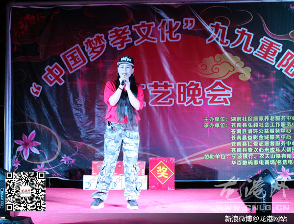 龙港网10月20日讯:九九重阳享健康,人间百善孝为先。昨天晚上,一场以“中国梦孝文化”为主题的九九重阳节文艺晚会在湖前社区夕阳红老人公寓精彩上演,为老年朋友奉上了一场精彩纷呈的文艺表演,也祝他们节日快乐。