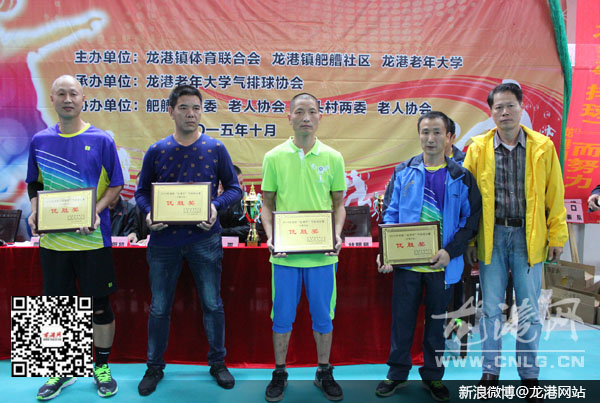 龙港网12月30日讯:比赛传递快乐、球艺彰显魅力。今天下午,2015年首届“龙港杯”气排球比赛在舥艚社区圆满落下了帷幕,并且现场进行了颁奖仪式。市老年体协原秘书长张挺初、市气排球专业委员会副会长李一亮、苍南县老年体协秘书长夏平等到场参加。