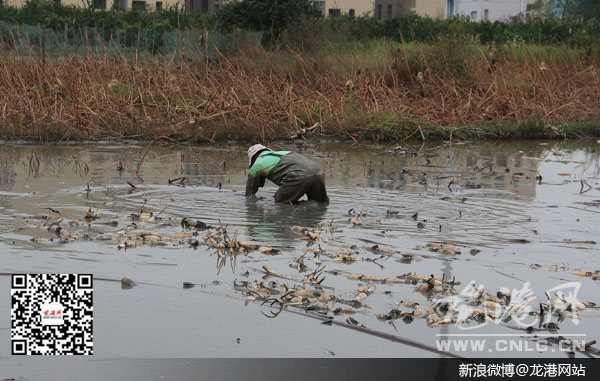 龙港网11月5日讯:一到秋天采藕季,藕农又开始忙碌起来。昨天上午,记者在龙港西河村一藕塘看到,农户在藕塘中游走,一支支嫩白的莲藕不时地被捞出水面。