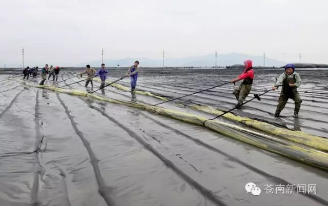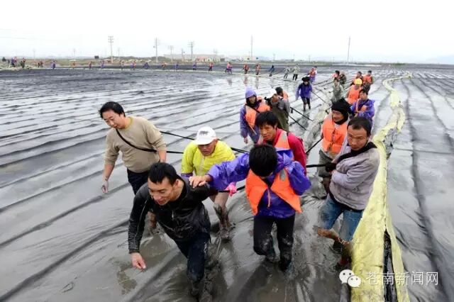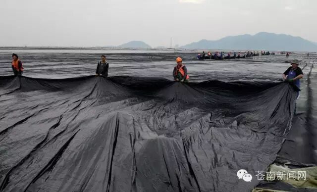 龙港网11月12日讯:连日来,龙港新城江南海涂围垦区吹填及软基处理二期工程的C区工地上,500多名工人在铺设PVC真空膜,号子声此起彼伏,气势浩大,场面壮观。