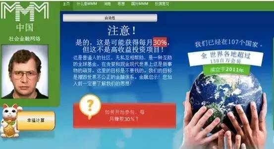 今年5月份,MMM进入中国市场。外媒称,俄罗斯历史上最大金融金字塔MMM的创始人谢尔盖·马夫罗季启动“MMM China”网站。