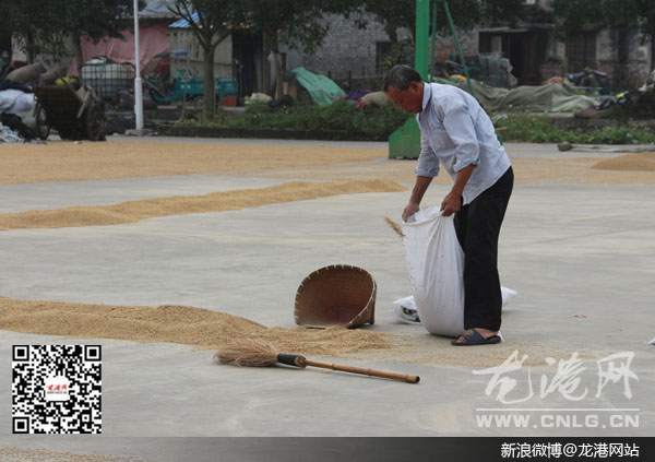 龙港网11月22日讯:晚稻收获期间,恰遇连续降雨,不少农民在费劲收割了稻谷后,又烦恼着无天可晒。所幸这两天,天气有所放晴,虽没有大太阳照耀,但也是让农民松了口气,纷纷将稻谷拿到空地上晾晒。