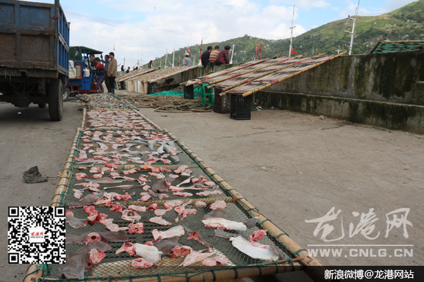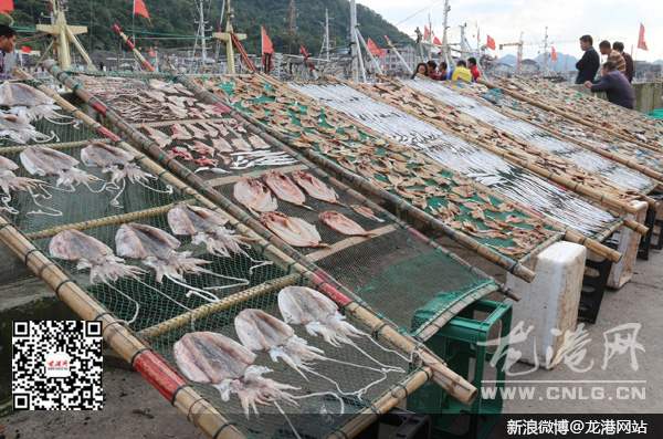 龙港网11月25日讯:昨天难得放晴,在龙港巴曹渔港码头沿线,一张张晒鱼簾摊上鱼儿,随着堤塘延伸,成为一道独特的渔港风景线。