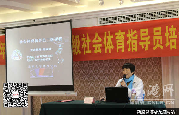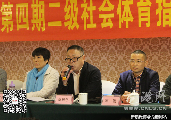 龙港网11月27日讯:为进一步加强对党和国家体育方针、政策的理解,明确当前群众体育工作的重要性和迫切性。加快我市社会体育指导员队伍建设,提高社会体育指导员的思想道德和业务素质,提高社会体育政策理论水平和组织管理能力。11月27—28日,为期两天的社会体育指导员培训班在龙港开班,培训会上讲解了基本知识、管理制度、科学健身指导,以及太极拳、排舞推广等,并对学员进行理论考试。苍南县体育局副局长章树学出席。