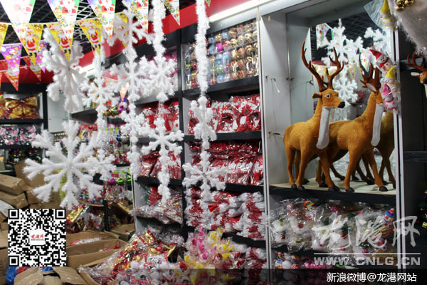 龙港网12月4日讯:圣诞节日益临近,圣诞用品又开始热销起来。在温州礼品城,圣诞球、圣诞树、圣诞老人等圣诞礼品已摆出柜台。商家们从义乌、瑞安等地积极备货,为圣诞消费市场预热。