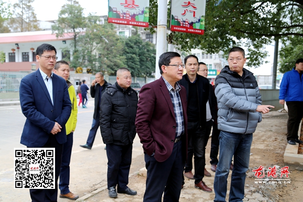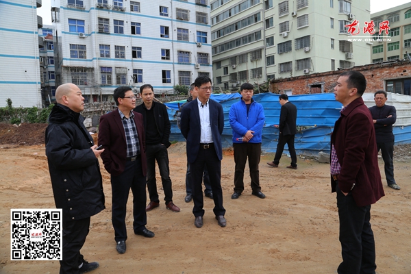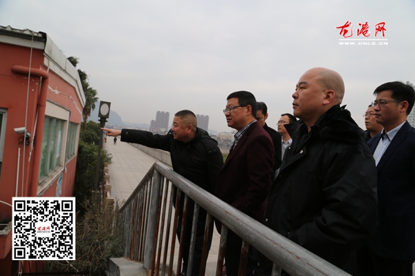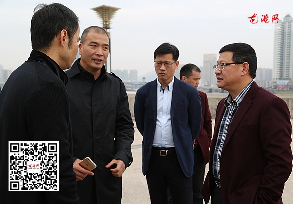 龙港网12月8日讯:( 广电记者:李其安 龙网摄影:陈记)昨天,苍南县委常委、龙港镇委书记丁振俊一行,对沿江休闲绿化带改造提升工程建设情况进行监督检查。镇委副书记黄贤满,副镇长梁亦俊陪同督查。